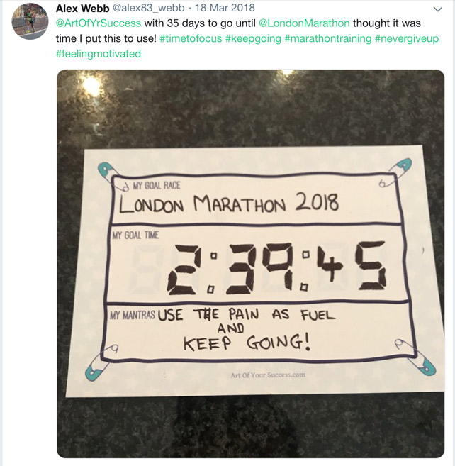 Grab your time goal and running mantra postcards to use for events. I’d love to see pictures of how you’ve filled them in to keep you motivated.