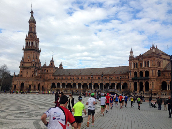 It really was flat. There was a minor incline out of an underpass, and a very gentle slope around 10 miles. The more you’re at your limit (as I was), the more you notice these things. But it is definitely a flat course (Seville course map).